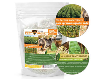 Produkty PEST PROTECT oparte na naturalnych składnikach, bez substancji chemicznych. Bezpieczne dla ludzi, zwierząt i roślin. Odstraszają zwierzęta w sposób humanitarny – bez ich krzywdzenia. Cechują się dużą skutecznością i długim czasem działania – nawet do 12 tygodni. Ze względu na różne potrzeby i miejsce zastosowania odstraszacze PEST PROTECT występują w dwóch wariantach: w formie granulatu, do rozsypania na pola uprawne, jak również w płynie do samodzielnego przygotowania roztworu. Produkty nieszkodliwe dla środowiska naturalnego.
