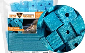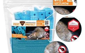 Dzięki temu pozostałe gryzonie i nie stają się podejrzliwe i nadal spożywają przynętę. Trutka Pest Protect zawiera mieszankę składników wykrywaną przez gryzonie z dużej odległości. Smakowicie wyglądająca przynęta powoduje, że szczury i myszy nie mogą się jej oprzeć! Trutka Pest Protect zwalcza: szczury śniade i wędrowne myszy nornice krety gryzonie oporne na kumarynę i warfarynę Trutki Pest Protect cechuje wysoka skuteczność. Posiadają właściwości mumifikujące - zasuszanie szczura od środka - zapobiegają wydzielaniu nieprzyjemnego zapachu towarzyszącego rozkładowi i przyciągającemu muchy. Produkt dedykowany dla profesjonalistów. Przeznaczony do stosowania wewnątrz i na zewnątrz budynków. Produkt odporny na wilgoć, nie pleśnieje. Pozwala na całkowite wyeliminowanie szkodników. Trutki Pest Protect bazie Brodifakum zalecane jest w przypadku kiedy chcemy się szybko pozbyć gryzoni z naszego otoczenia, inne produkty zwalczające gryzonie się nie sprawdziły, a zależy Ci na natychmiastowym efekcie. Trutki Pest Protect pomogą Ci zwalczyć myszy i szczury wewnątrz pomieszczeń, wokół budynków, w środkach transportu, na terenach otwartych, wysypiskach odpadów, magazynach, pomieszczeniach.